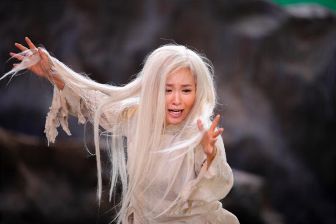 拖著疲乏的身躯慢慢来到山涧,像任何爱美的少女一样,喜儿洗脸时顺便往水中照照影子、理理头发,不照还好,一照不禁大吃一惊,满头乌黑的头发仅仅过了一夜居然变成了灰色!喜儿抚著一头秀发悲痛饮泣,天啊!想不到一夜的折腾竟要付出这么大的代价!