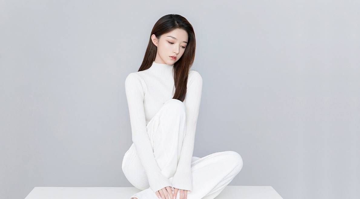 柳眉轻弯,淡而柔。琼鼻挺翘,小而秀。红唇似火,珠圆玉润。
