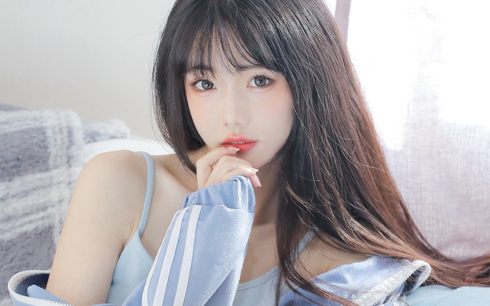 客厅电视屏幕上播着男女酣战的淫秽画面,白晓晓坐在地毯上,身子依靠在沙发上,秀发散落在胸前,两条细长的美腿微微分开,纤细的手指伸到两片粉嫩肥美的贝肉间,上下穿梭揉搓,甬道内淫水不停涌出,顺着阴户流到臀缝间。