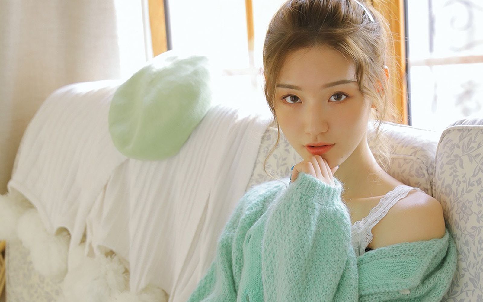 贺唯正靠着椅背,翻阅着一本时尚杂志,纤长的手指夹着书页,手腕上戴着一串向阳送她的月光石手链,衬得皮肤愈发白皙。她似乎感觉到了丈夫的注视,抬起头,露出一双明亮清澈的眼眸,嘴角自然地向上弯起一个好看的弧度。