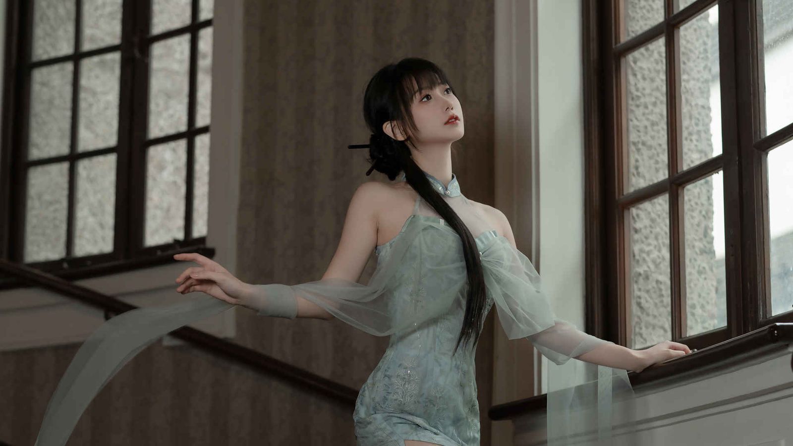 走廊空荡,日光从尽头的窗户斜照进来,能看见灰尘在光柱中飘浮。