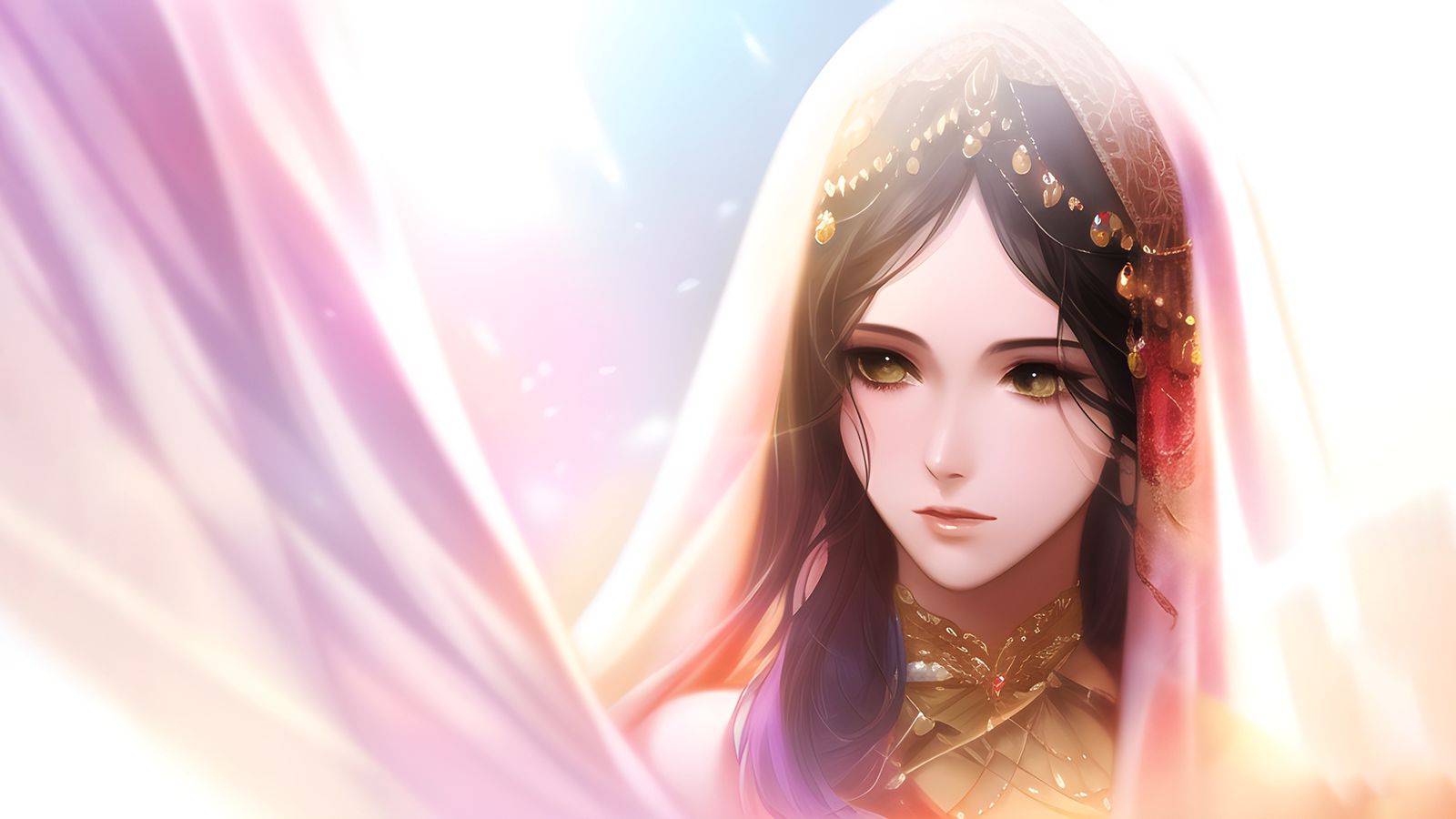 没移惜梦露出的容颜,美得惊心动魄:柳眉杏眼,琼鼻樱唇,肌肤胜雪,高髻下几缕碎发贴着脸颊,红嫁衣衬得她胸脯饱满、腰肢纤细、臀丘圆润,整个人如党项传说中的雪山女神,却又带着没移贵女特有的温柔端庄。连一向肃穆的党项贵族们都忍不住低声惊叹。